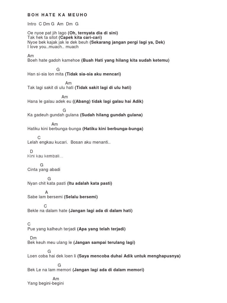 Lirik Dan Chord Lagu Indo